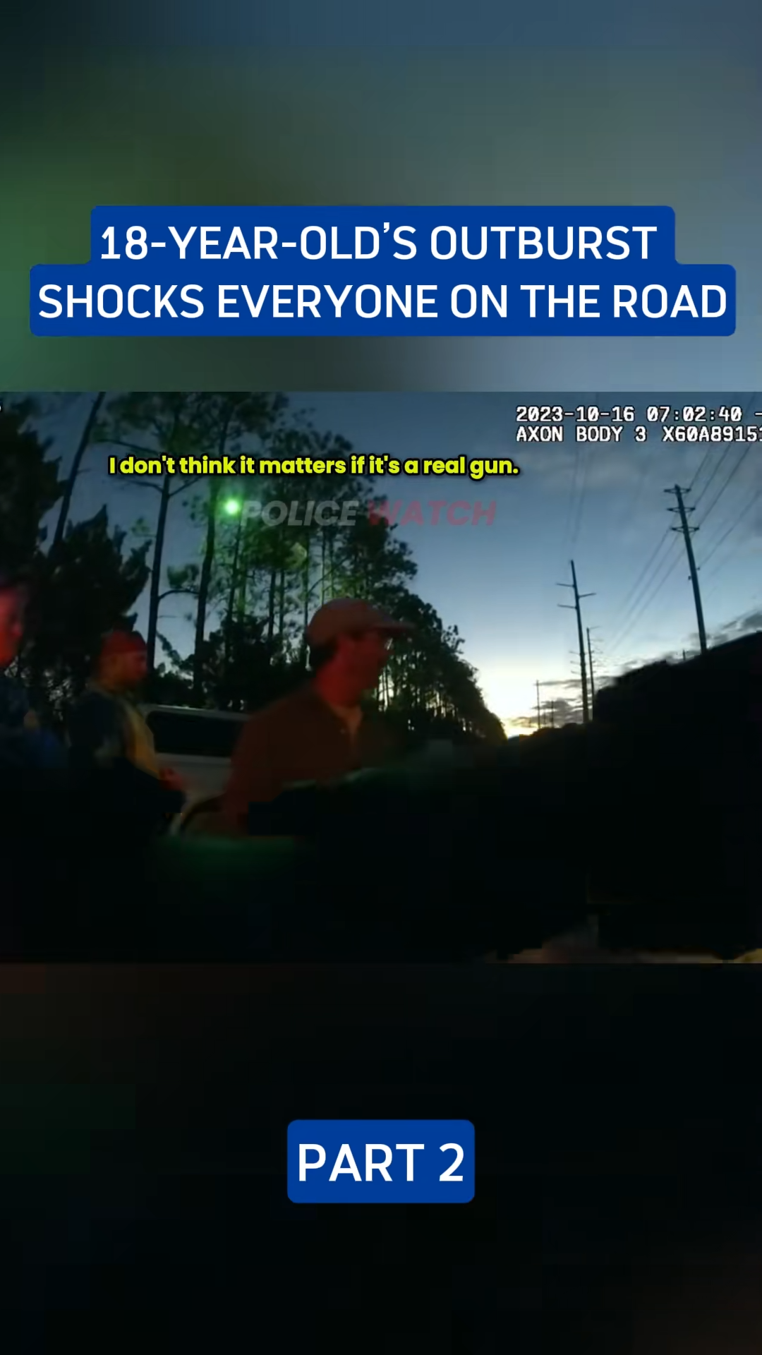Witness Alana J., who filmed the incident from her car window (naturally), said the teen leapt out of his vehicle, threw his hands in the air, and shouted: