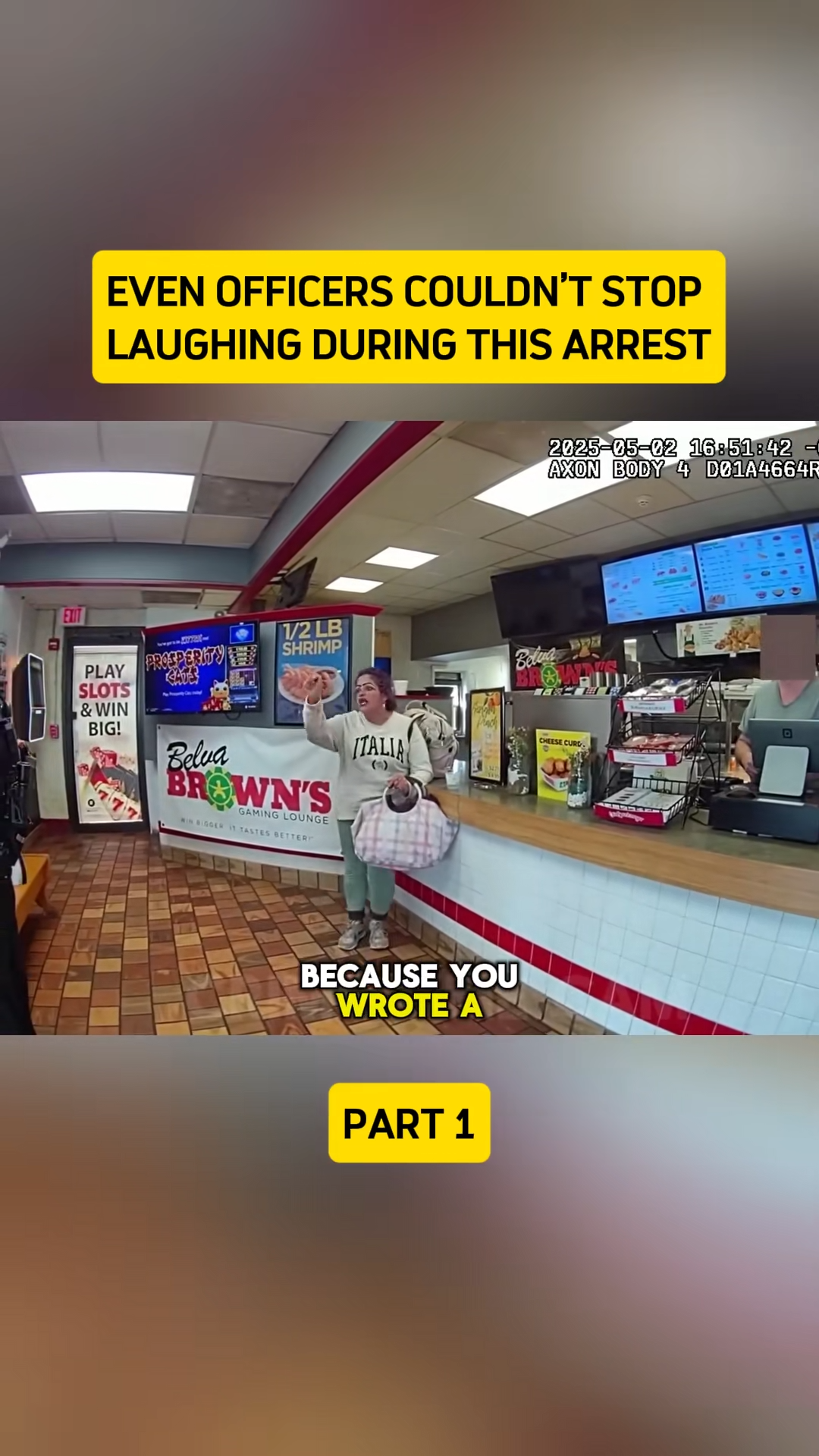 Bodycam footage shows even the cops struggling to keep straight faces as she dramatically refused to leave. One officer can even be heard chuckling under his breath before escorting her out.
