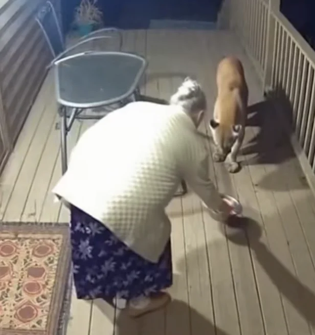 In a heartwarming and slightly bewildering scene, a village grandmother has captured hearts after being filmed feeding a wild cat that roams near her home — treating it with the same care and calmness she’d offer a house cat.