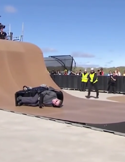 The clip (which has already racked up millions of views across TikTok, Instagram, and probably your nan’s WhatsApp group) shows a wheelchair — yes, THE wheelchair — gaining speed before launching into a near-perfect flip, while a group of stunned skater kids scream in disbelief.