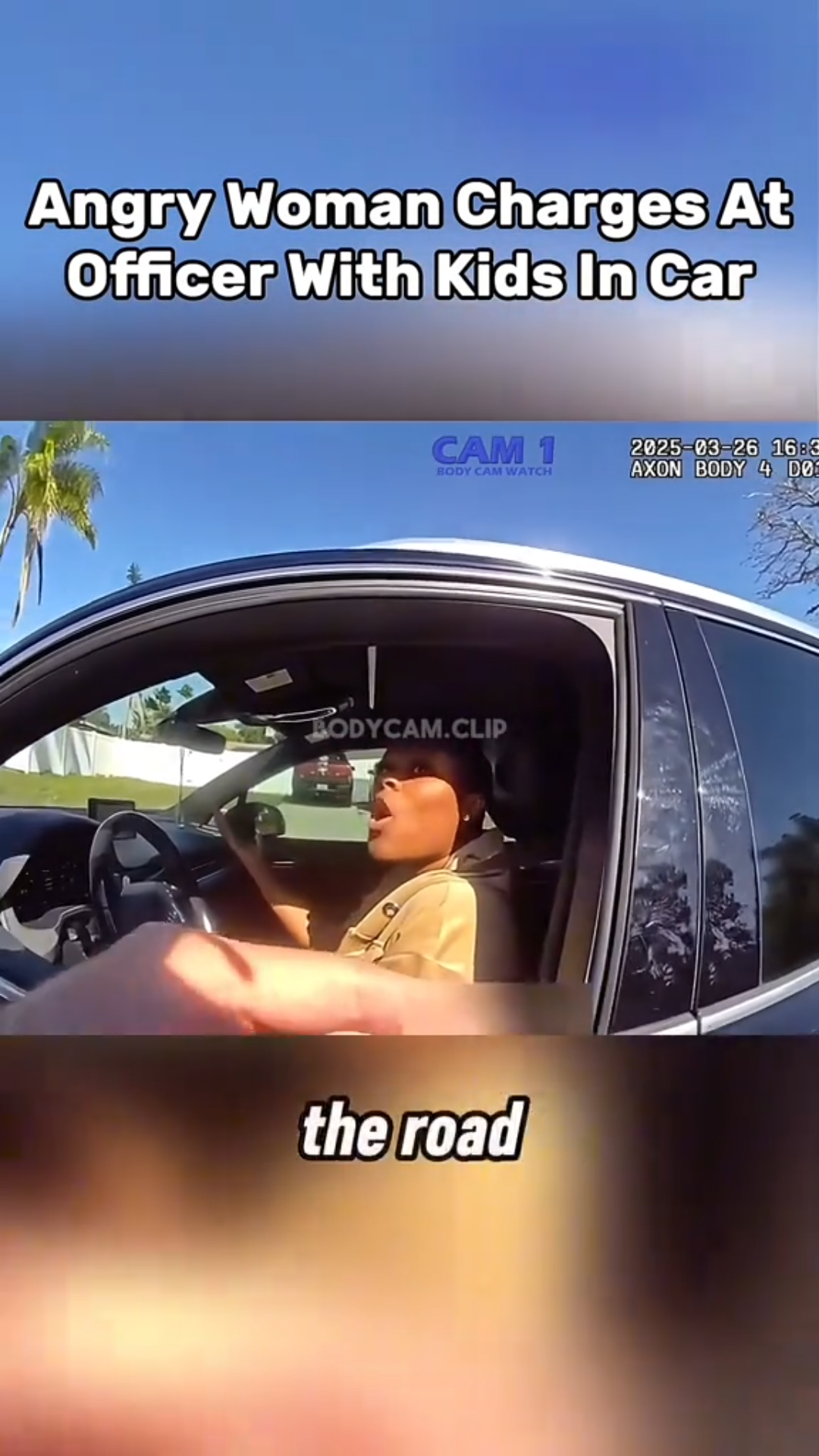 Bodycam footage shows the officer trying to calm her down while the children, still buckled in, watched the whole thing unfold. Witnesses say it was “like a scene out of a reality show nobody asked for.”